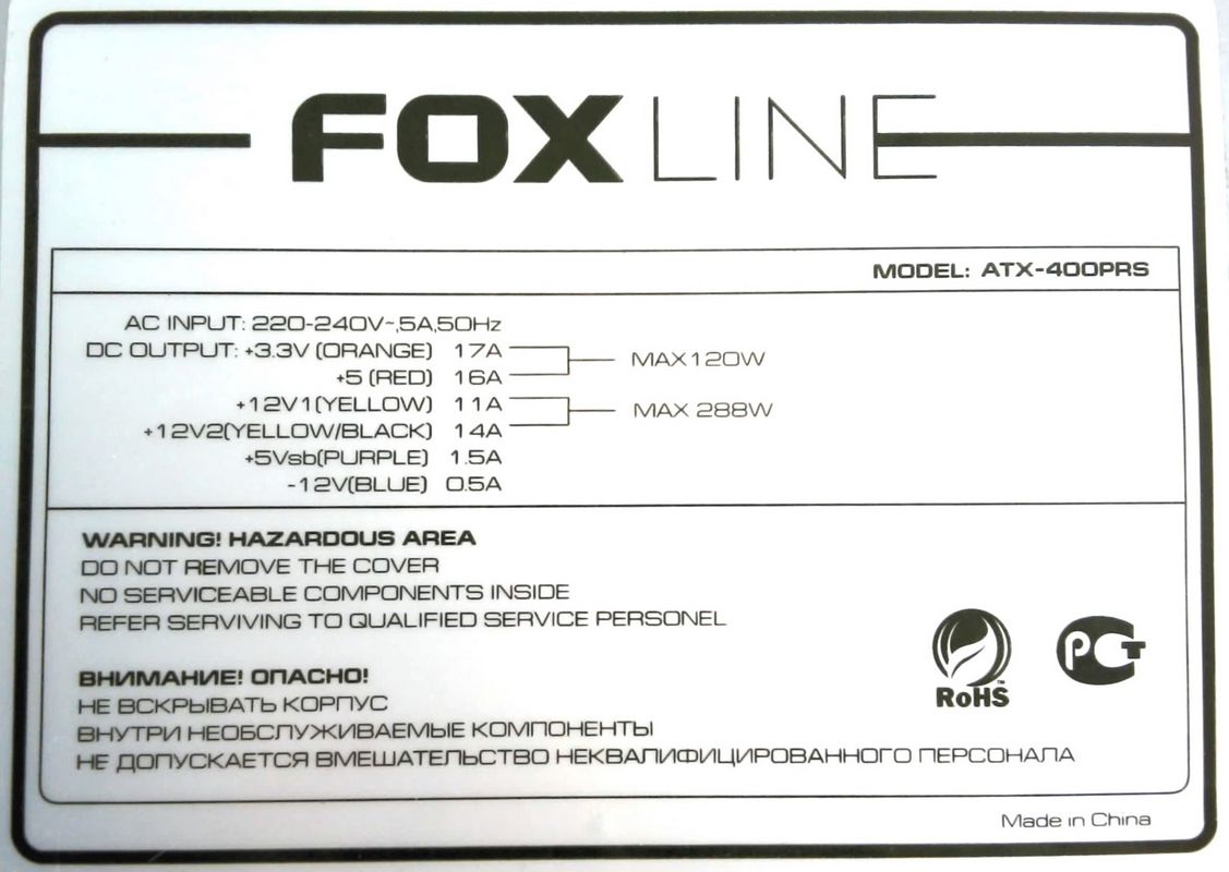 Блок питания Foxline ATX-400PRS ATX 400W 12см