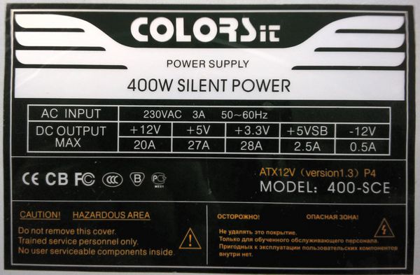 Блок питания Colors-It 400-SCE ATX 400W 12см