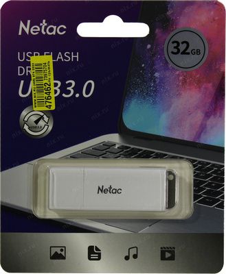 Съемный носитель 32Гб Netac NT03U185N-032G-30WH USB3.0 белый с колпачком, пластиковая