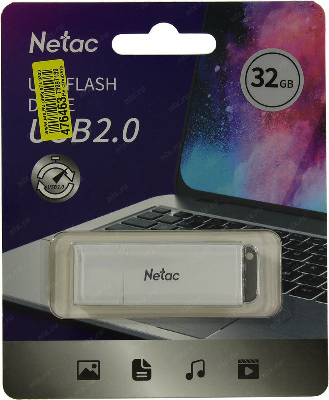 Съемный носитель 32Гб Netac NT03U185N-032G-20WH USB2.0 белый