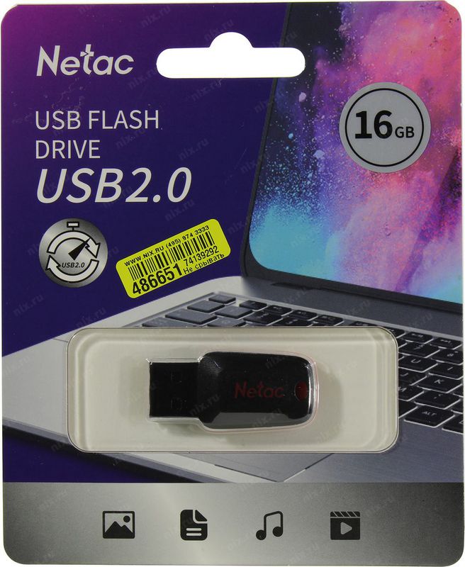 Съемный носитель 16Гб Netac NT03U197N-016G-20BK USB2.0 черный пластиковая