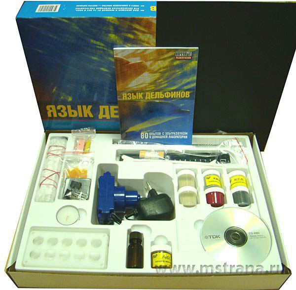 Набор для опытов "Язык дельфинов" откроет вам дверь в удивительный мир неслышимого звука, который называется ультразвуком. Вы будете работать с объектом, который невозможно почувствовать непосредственно. О его существовании мы можем узнать лишь по косвенным признакам, с которыми вы познакомитесь. Несмотря на то, что мы не слышим ультразвук так, как слышим обычный, мы широко его применяем. При помощи ультразвуковой эхолокации можно определять расстояние до объектов. Ультразвук хорошо проходит сквозь воду, поэтому с его помощью можно определить глубину водоемов и даже найти в нем косяк рыбы. Ультразвуковые ванны используют для стирки и очистки поверхностей. При помощи ультразвука можно измельчить капли в тончайший туман. Ультразвуковые генераторы используют для тонких перемещений групп линз в современных объективах с автоматической фокусировкой. Ультразвук позволяет заглянуть внутрь нашего тела и подробно разглядеть в нем разные органы. С каждым годом люди находят все новые и новые применения ультразвука.Ультразвук применяют не только люди. Задолго до человека его стали использовать некоторые животные. С помощью ультразвука летучие мыши умудряются в кромешной темноте находить себе пищу, причем они прекрасно отличают съедобного комара от несъедобной соринки. Кроме того, ультразвуковая эхолокация позволяет летучим мышам на огромной скорость огибать препятствия. А дельфины с помощью ультразвука не только обнаруживают препятствия, но и общаются друг с другом.Какие уникальные свойства ультразвука позволяют использовать его для эхолокации и общения под водой? Что движет линзу в объективе? Почему ультразвук отстирывает вещи, а слышимый звук – нет? Как превратить каплю воды в мельчайший туман? Ответы на эти и другие вопросы даст вам набор «Мир ультразвука» из серии «Научные развлечения».