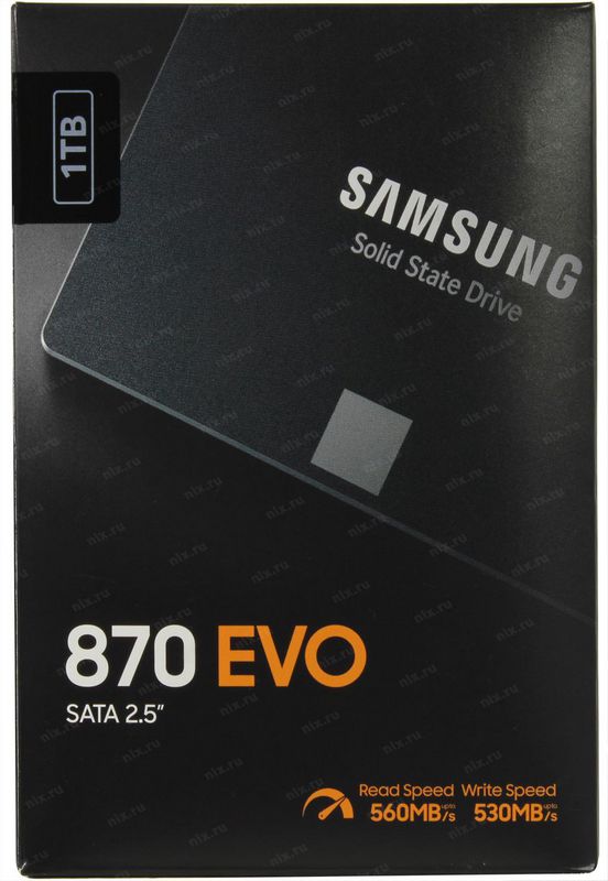 Накопитель SSD Samsung MZ-77E1T0BW 1Тб SATA-III 2,5” TLC 870 EVO Series SATA3, up to 560 530MBs, 98000 IOPs, 3D , MKX, DDR4 1Gb, 7mm