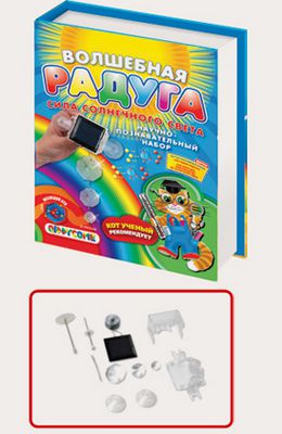 Научно-познавательный Набор для юных исследователей и экспериментаторов. Занимаясь с набором, ребенок сможет собрать устройство, с помощью которого можно увидеть радугу, получить собственную радугу, изучить работу энергосберегающих ламп, а также получить электричество из солнечного света. В комплект входит красочная инструкция с научно-популярными статьями "Что такое радуга" и "Как получить электричество из солнечного света".