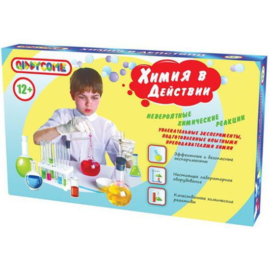 Научно-познавательный набор «Qiddycome» «Химия в действии» поможет ребенку познакомиться с увлекательным миром химии. Юные ученые будут проводить различные эксперименты с самыми разными химическими элементами – кислотами, металлами, щелочами, - и наблюдать поразительные реакции. Ребенок своими глазами увидит различные превращения веществ, о которых он только читал. В набор «Химия в Действии» входят реактивы, стеклянные трубочки, чашечки, пробирки, графитовые стержни, фильтрованная бумага, мерные стаканчики, сухое горючее и все, что еще нужно для первичных химических опытов. Также, в наборе присутствует красочная подробная инструкция с описанием 44 опытов, которые можно провести. В нашем интернет магазине можно купить ST-CH5010 «Химия в Действии», который станет увлекательным подарком для тех, кто любит проводить эксперименты и интересоваться, почему в окружающем мире происходит именно так, а не иначе. Игра с набором поможет ребенку развить его интерес к наукам, созданию чего-то нового и необычного, изучению и развитию абстрактного и логического мышления, усидчивости, аккуратности, трудолюбия, умению следовать составленному плану, самостоятельности.