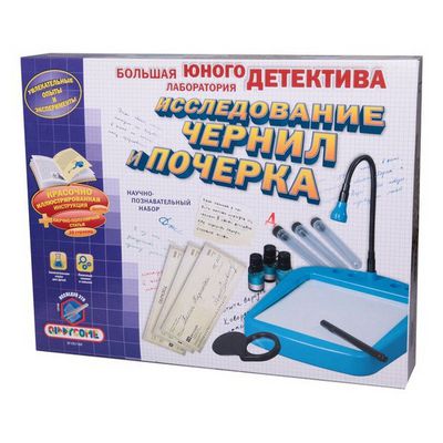 Большая лаборатория юного детектива: Почерк и чернила ST-CR1160 Qiddycome. Этот увлекательный научно-познавательный набор станет замечательным подарком юному исследователю. Занимаясь с набором, ребенок сможет узнать, что могут сказать о человеке особенности его почерка, научится отличать поддельные подписи от настоящих, освоит метод хроматографического анализа чернил. Кроме того, он сможет приготовить собственные невидимые чернила и раскроет серию таинственных преступлений. В набор входит красочно иллюстрированная инструкция на русском языке, содержащая научно-популярную статью. Рекомендуется для детей от 8 лет.