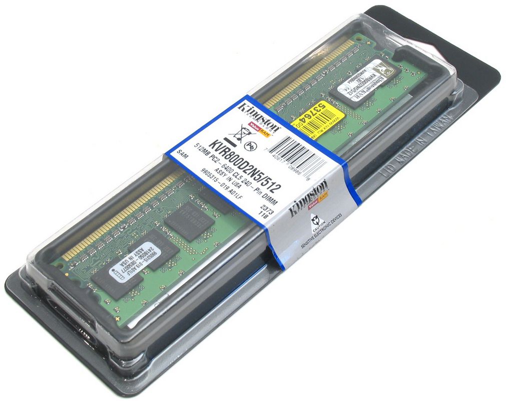 Оперативная память 512Мб Kingston KVR800D2N6/512 DDR2 PC2-6400 CL5 1,8V