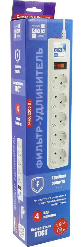 Кол-во выходных розеток 5 розеток евростандарт с заземлением