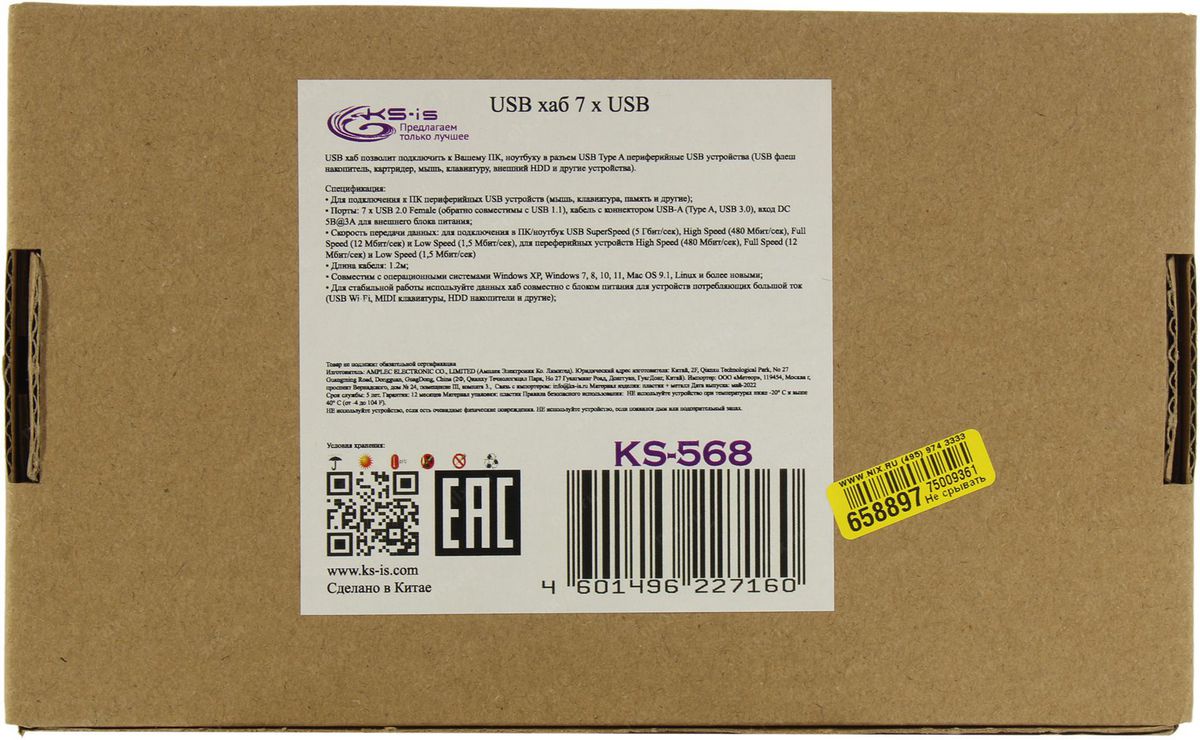 Многопортовый USB-концентратор KS-568: расширьте свой один порт USB до 7 портов, в которые легко подключают несколько USB-устройств к вашему компьютеру и ноутбуку. Например, флэш-диск, мышь, устройства для чтения карт памяти, клавиатуры, игровые устройства, mp3-плееры, жесткие диски и т. д.