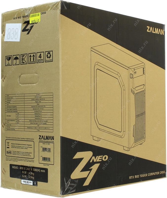 Корпус Zalman Z1 NEO ATX без БП боковое окно, черный