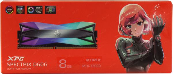 Описание Модуль памяти ADATA 8Gb DDR4 UDIMM, XPG SPECTRIX D60, 4133MHz CL19-23-23, 1.4V, RGB + Серый Радиатор
