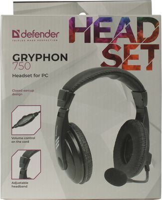 Описание Полноразмерные наушники с микрофоном, мягкими амбушюрами из искусственной кожи и регулятором громкости на кабеле