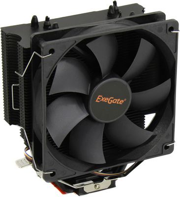 ExeGate EX286299RUS 4pin Кулер Dark Magic EXX400B- (Al+Copper, черное покрытие, 4 тепл.трубки, LGA775/1150/1151/1155/1156/1200/AM2/AM2+/AM3/AM3+/AM4/FM1/FM2/754/939/940, TDP 140W, Fan 120mm, 1200-2100RPM, Hydro bearing, 11-24db (E