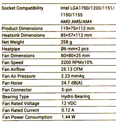 Размеры установленного на охлаждение вентилятора 80 x 80 x 25 мм