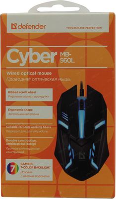 Мышь Defender 52560 проводная черный Cyber MB-560L [, 7 цветов, 3 кнопки,1200dpi, }