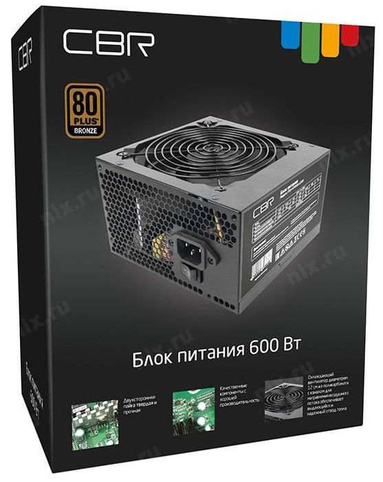 Блок питания CBR PSU-ATX600-12GM ATX 600W 12см 80+ Bronze, APFC, 0.6mm, 20+4pin, 1x8-pin(4+4P), 2x6+2pin, 6xSATA, 4xIDE, fan, 1.5м кабель питания, черный