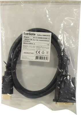 Кабель аудио-видео ExeGate EX294672RUS HDMI (M)-DVI-D (M) 1,5м -DVI-D EX-CC-M-DVI2M-1.5 (19M/(24+1)M, dual link, позолоченные контакты)