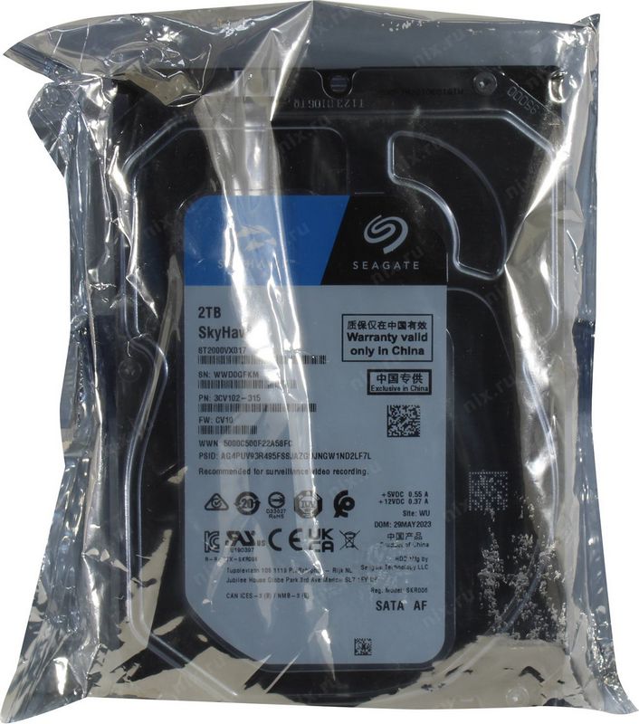 Жесткий диск Seagate ST2000VX017 2Тб SATA-III 3,5” 5400 RPM 256Mb Skyhawk