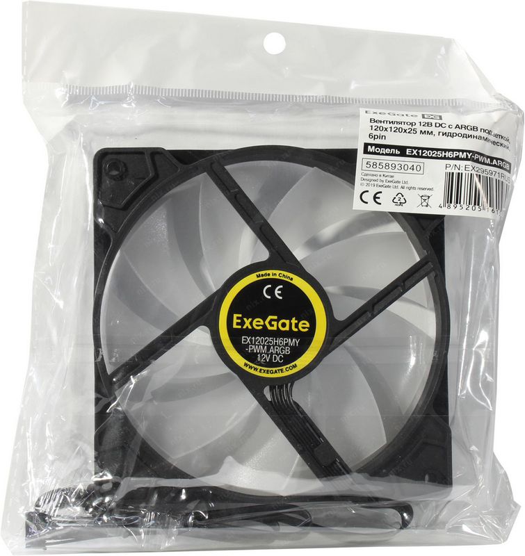 Вентилятор ExeGate EX295971RUS 120x120x25 4pin 12В DC с подсветкой EX12025H6PMY-.ARGB ( мм, Hydraulic bearing (гидродинамический), 6pin, 1200RPM, ARGB подсветка, 33dBA)
