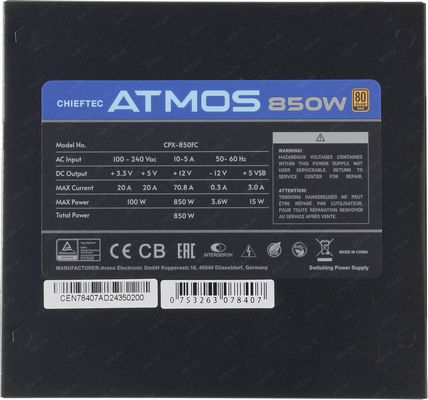 Блок питания Chieftec CPX-850FC ATX 850W Atmos ( 3.0, 80 PLUS GOLD, Active PFC, 135mm fan, Full Cable Management, Gen5 PCIe) Retail