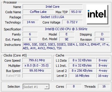 Процессор Intel Core i9 CC150 (~ i9 9700F) Socket 1151v2 3,5ГГц OEM без GPU 8С/16T