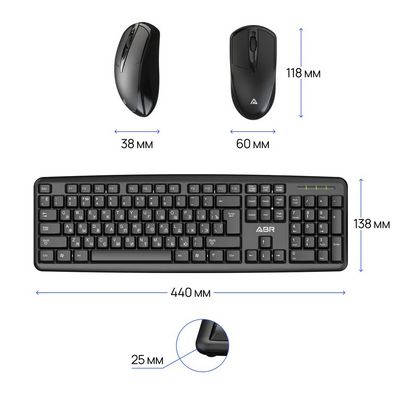 Комплект (клавиатура+мышь) ABR 695454 KM600 черный, ипроводной, RU/EN