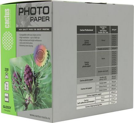 Фотобумага Cactus CS-GA6230500 A6 (10x15см) 500л. 230г/м2 глянц.