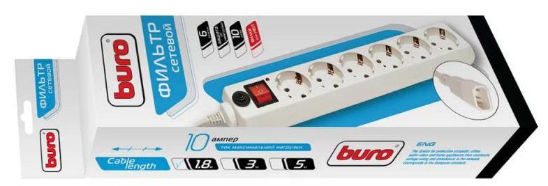 Сетевой фильтр Buro 600SH-1,8-UPS-W 1,8м 6 розеток белый