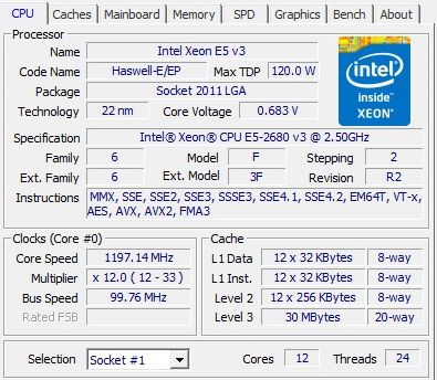 Процессор Intel Xeon E5 2680 V3 Socket 2011-v3 2,5ГГц OEM без GPU 12С/24T