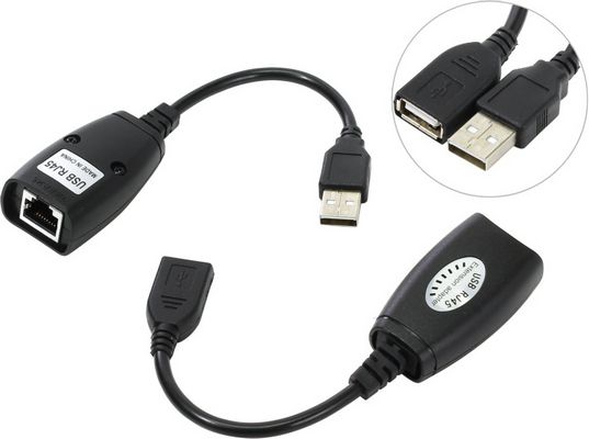 Кабель USB VCOM CU824 USB2.0 (AM)-RJ45 (F)-USB2.0(AF) 0,1м до 45м