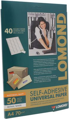 Этикетки Lomond 2100195 A4 50л. 70г/м2 48,5x25мм x40шт 40 делен. (48.5 x 25.4 мм)