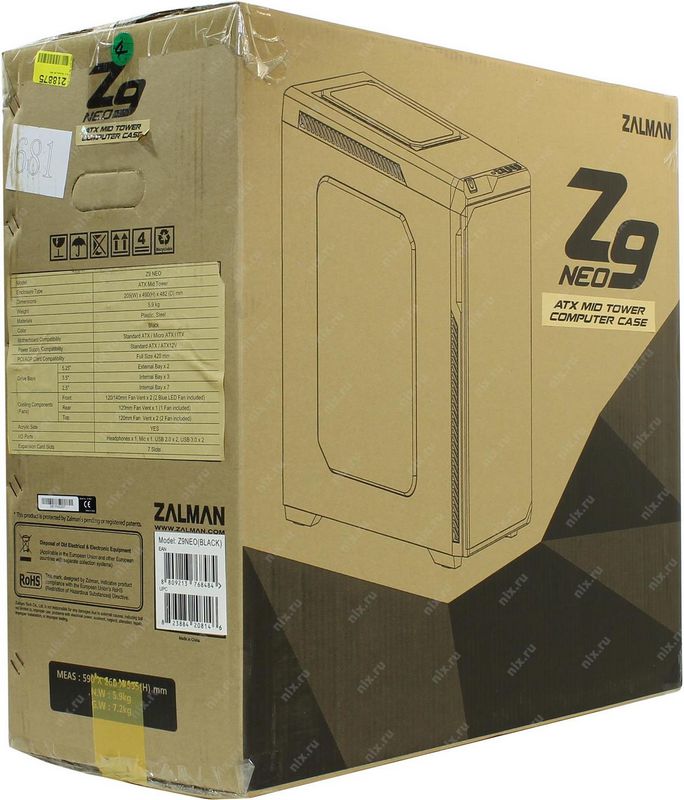 Установленные вентиляторы 2 x 120 мм на верхней панели, 120 мм на задней панели, 2 x 120 мм на передней панели