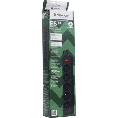 Сетевой фильтр Defender ES (99484) 1,8м 5 розеток черный