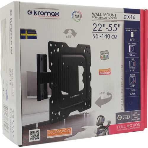 Кронштейн Kromax DIX-16 черный для телевизора 22”-55” макс.30кг настенный поворот и наклон