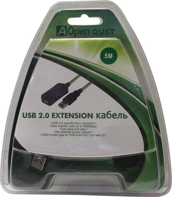 Удлинитель USB Aopen ACU823-5M USB2.0 (AM)-(AF) 5,0м