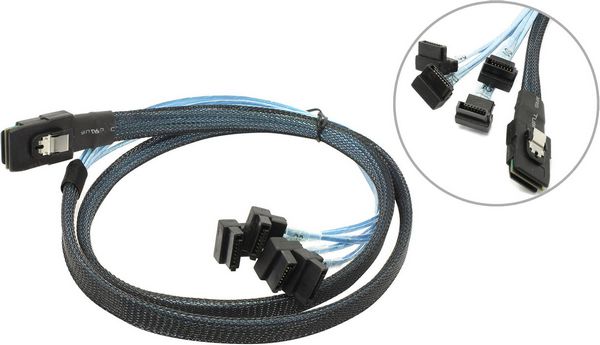 Кабель MS36-4SATAU-100B-S SFF-8087->4xSATA 1,0м угловой коннектор