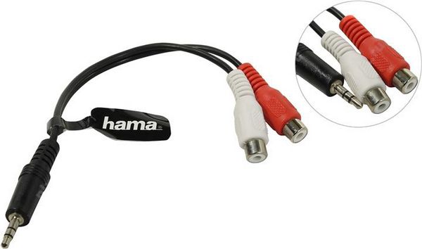 Кабель аудио HAMA 43365 Jack 3,5мм (M)-2xRCA(F) 0,1м