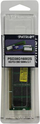 Оперативная память 8Гб Patriot PSD38G16002S DDR3 PC3-12800 SODIMM CL11 1,5V