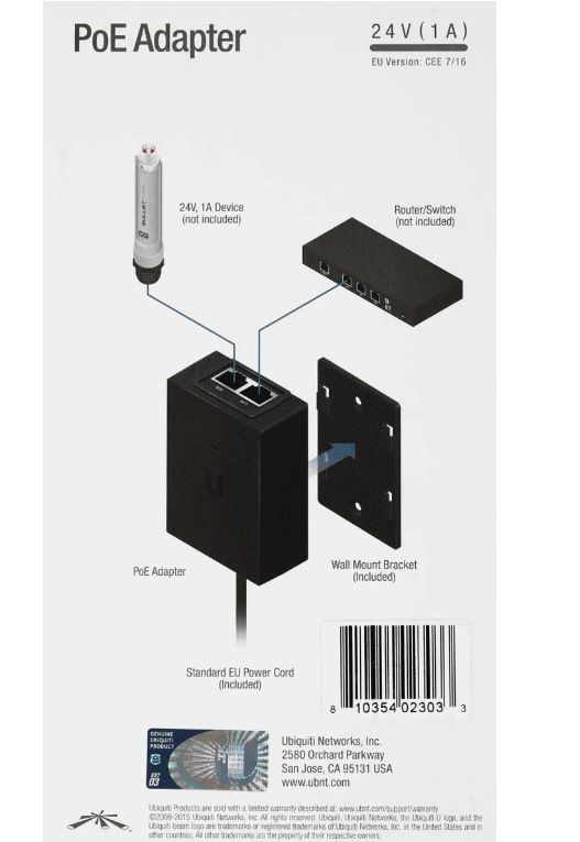 Блок питания Ubiquiti POE-24-24W PoE Adapter (24V, 1A)
