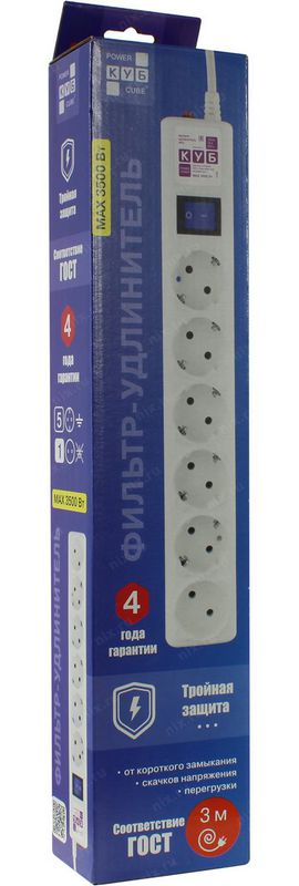 Сетевой фильтр PowerCube SPG(5+1)-16B-3М-WHITE 3,0м 6 розеток белый 16A