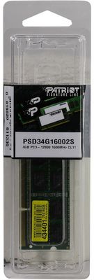 Оперативная память 4Гб Patriot PSD34G16002S DDR3 PC3-12800 SODIMM CL11 1,5V RTL 204pin