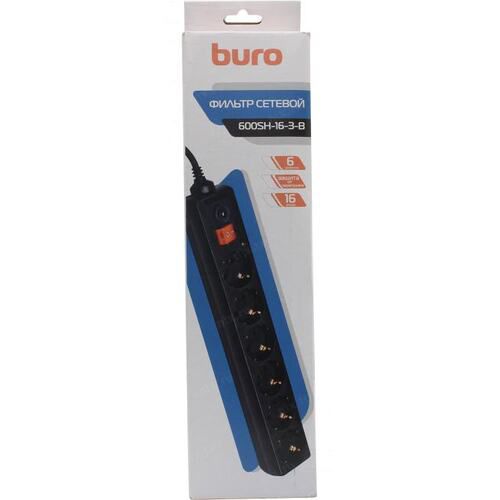 Сетевой фильтр Buro 600SH-16-3-B 3,0м 6 розеток черный 16A