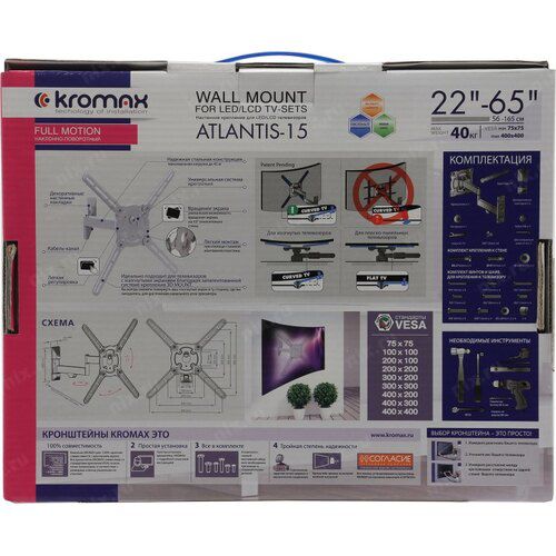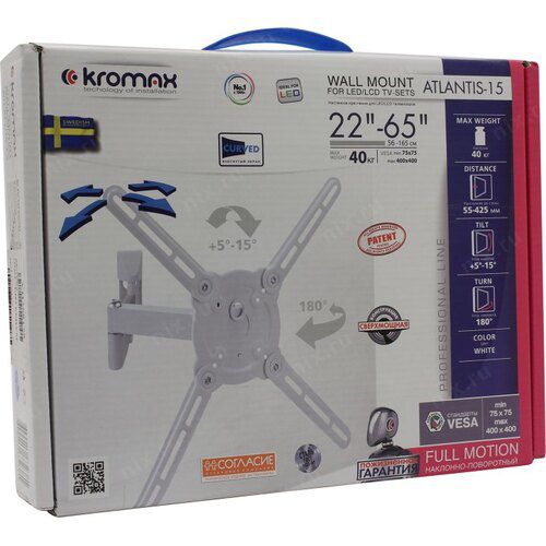 Кронштейн Kromax ATLANTIS-15 белый для телевизора 22”-65” макс.30кг настенный поворот и наклон