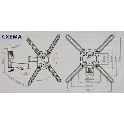 Крепление монитора или телевизора к стене VESA 75 x 75, VESA 100 x 100, VESA 200 x 100, VESA 200 x 200, VESA 300 x 200, VESA 300 x 300, VESA 400 x 200, VESA 400 x 300, VESA 400 x 400
