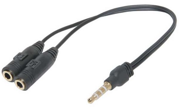 Описание Кабель-переходник для подключения наушников с миниджеком 3.5 мм и микрофона с миниджеком 3.5 мм или гарнитуры с 2 миниджеками 3.5 мм к 4-полюсному разъему для гарнитуры смартфона, планшета или ноутбука