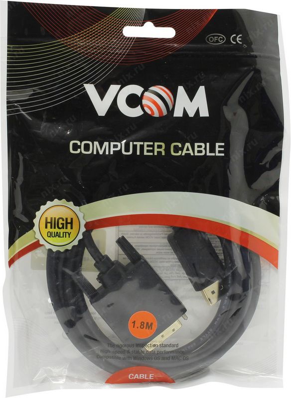 Кабель аудио-видео VCOM CG606-1.8M DisplayPort (M)-DVI-D (M) 1,8м