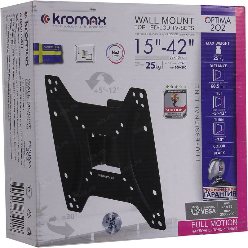 Кронштейн Kromax OPTIMA-202 черный для 15”-42” макс.25кг настенный наклон