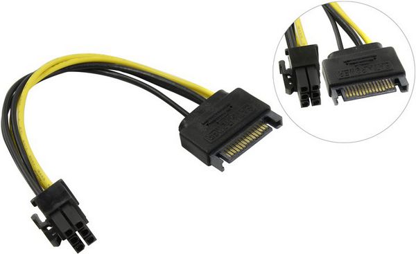 Описание Переходник для дополнительного питания видеокарты через 6-пиновый разъем от коннектора SATA блока питания компьютера