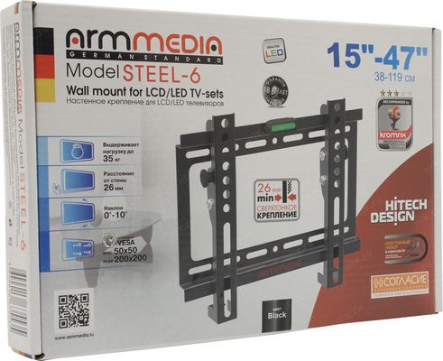 Кронштейн ARM Media STEEL-6 черный для телевизора 15”-40” макс.40кг настенный наклон