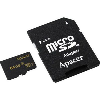 Карта памяти 64Гб APACER AP64GMCSX10U1-R microSDXC Class 10 SD адаптер UHS-I U1